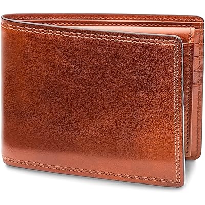 Bosca Mens Leather Wallet with Removable ID Passcase - Dolce Italian leather Wallet for Men 8 Card Slots, Bifold Design, Hand-Stitched Detailing, Polished Finish, Amber